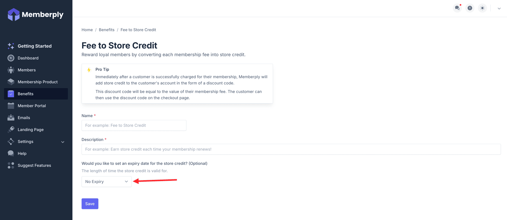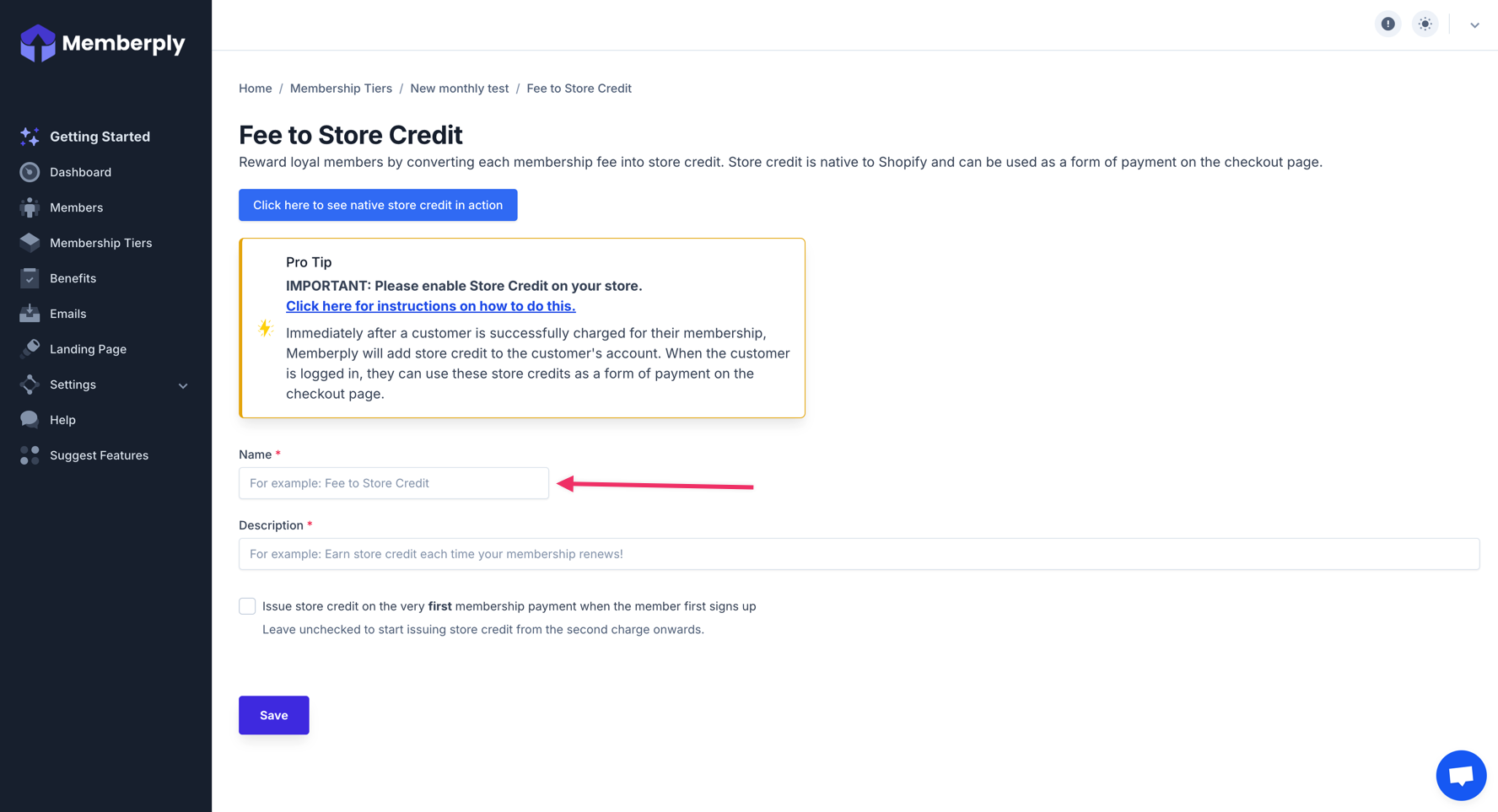 6. Enter a description e.g. Earn store credit each time your membership renews!