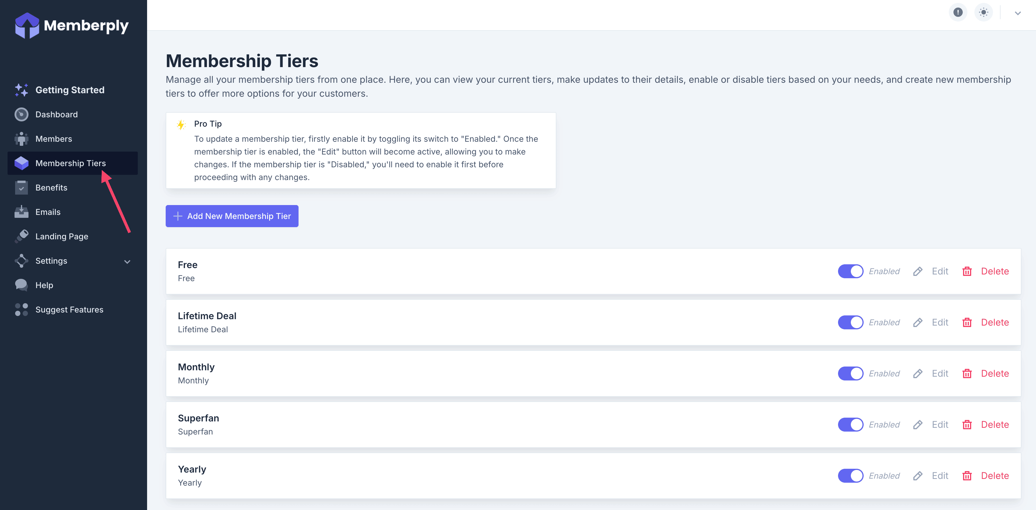 <figure><img src="https://2037526248-files.gitbook.io/~/files/v0/b/gitbook-x-prod.appspot.com/o/spaces%2FVJXUszoUtB7SAceDihaK%2Fuploads%2FSLIzCmB6Txz7zIrKty5I%2FNewMembershipTierView.png?alt=media&#x26;token=b29dca1d-ba2b-484b-a083-3ca2de1fe569" alt=""><figcaption></figcaption></figure>